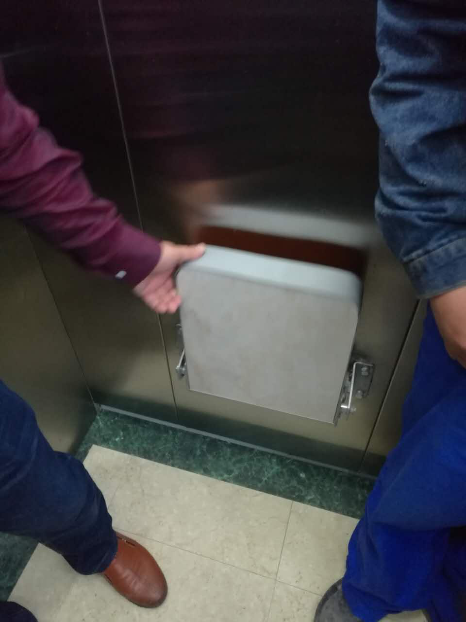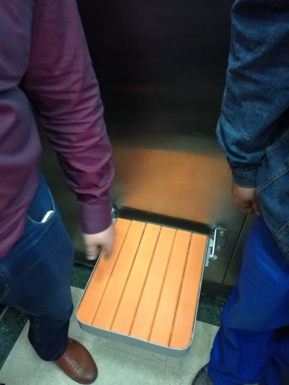 *轿内安装了折叠式座椅 *归位后的折叠式座椅