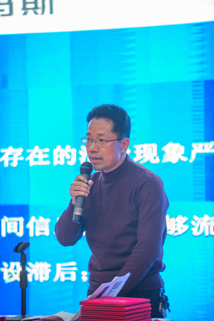 接下来由公司李金伟副总发言,李总以PPT图文并茂的形式向员工们直观地介绍了公司在2018年度取得的成绩与工作中存在的不足之处,以及畅想2019年公司层级需要着手办的几件大事,譬如2019年计划要完成新购厂房的基建与搬迁工作、春节后公司全新管理模式----ERP管理平台的全面启动与应用等;