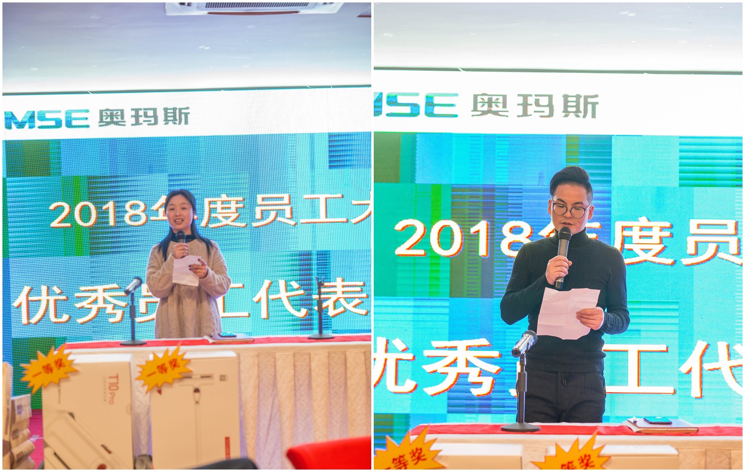 最后,由沈丽芬与张建新2位优秀员工代表分别作为乐动网官网老员工、新员工之代表上台发表了个人获奖感言。