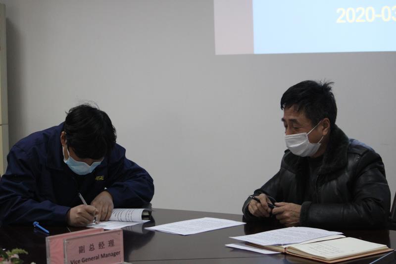 会议最后一个议程是潘总分别与各主要部门的负责人当场签订了 “2020年度安全责任书” (部门级)(见附图),然后由生产部经理与生产班组组长签订“2020年度安全责任书” (组科级)(见附图)。我们通过“责任书”的形式按层级落实中层员工的管理责任,明确“做好就奖、做不好就处罚”的奖罚分明机制。要求做到层层分解、全员参与,利益相关,做到在日常生产活动时刻绷紧安全生产这根弦,要人人关心消除不安全因素,不出安全事故。